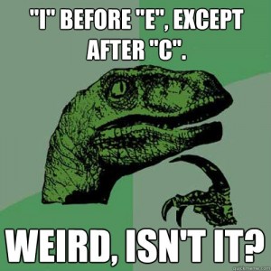 We all know the old adage “I before E, except after C.” We also know that it should be selectively obeyed because it’s not always so simple. I remember having heard a longer version of the rule as a kid, and my friend Parker had heard a different one. Thus, the quest to find the most comprehensive rendition of the poem began.